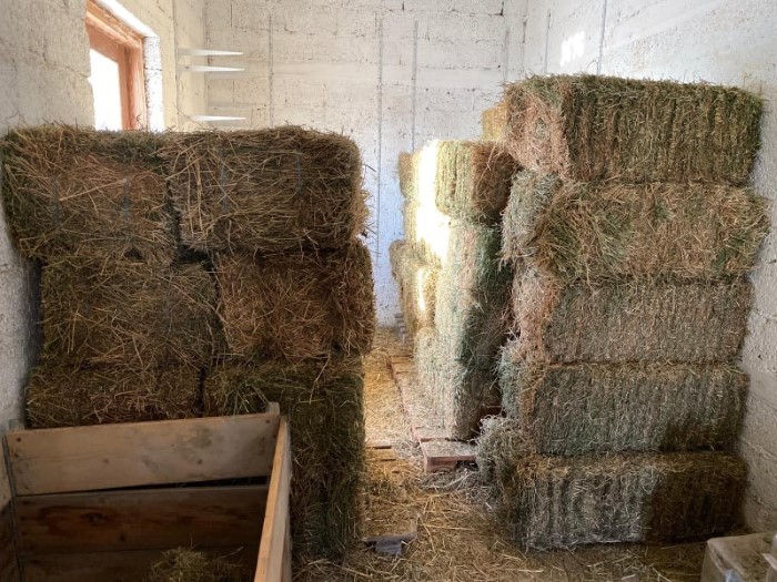 aushängenden Heusäcke für die Nacht noch einmal aufgefüllt, sodass die