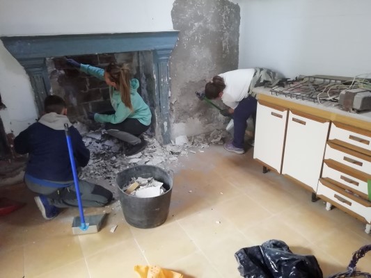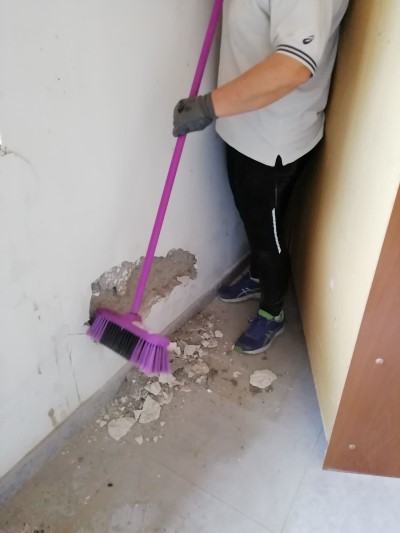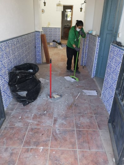 entrümpelt, gesäubert und zunächst einmal notdürftig für die Katzen