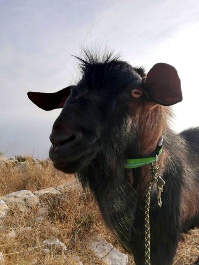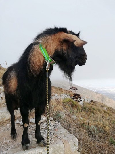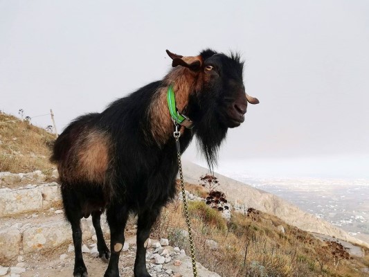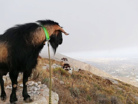 Anfang November bekam Christina die Nachricht, dass sich in der Ausgrabungsstätte "Alt Thira" oben auf dem Berg Profitis Illias, dem höchsten Punkt von Santorini, seit einiger Zeit ein Ziegenbock befindet. Er muss wohl schon eine ganze Weile in der Gegend herum geirrt sein und hatte sich schließlich in die Ausgrabungsstätte zurück gezogen. Er würde die Touristen bedrängen und nach Futter betteln und er müsse dort so schnell wie möglich weg. Wenn Christina ihn nicht abholen würde, dann müssten sie selbst dafür sorgen, dass er weg kommt. Man kann sich leicht denken, was damit gemeint war. Wir wollten den armen Kerl nicht seinem Schicksal überlassen und beschlossen, dass wir ihn ins Tierheim holen.