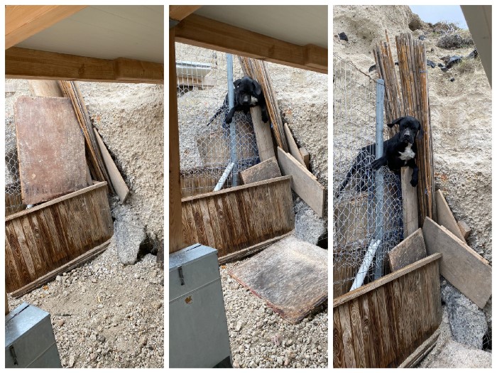 des Hügels gänzlich ab und so konnten die Hunde auch über die Lücken den