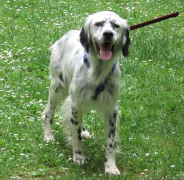 Aron ist ein bildschöner Setter(mix). Er ist absolut sanftmütig, sehr anhänglich und verschmust. Er verträgt sich super mit anderen Hund ist kinderlieb, intelligent und gehorsam. Aron fährt problemlos Auto und ist rundum ein toller Hund. Wir vermitteln ihn gerne auch zu lauffreudigen Menschen oder zu einer Familie mit Kindern, die gerne mit Aron toben möchten. Aron ist sicherlich auch gut geeignet fürs Fahrradfahren, Joggen und Hundesport oder einfach nur als toller Kumpel zum Liebhaben.
