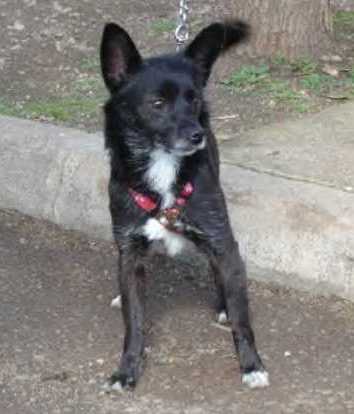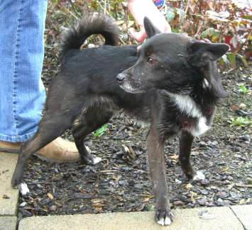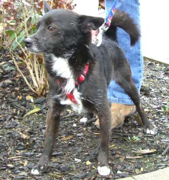 super toller kleiner Freund. Er ist schwarz mit weißen Abzeichen,