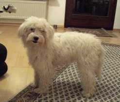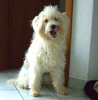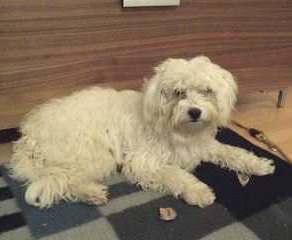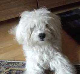 hochbeiniger Maltesermischling mit einem sehr zärtlichen und sanften
