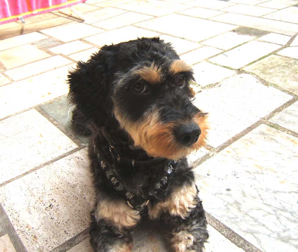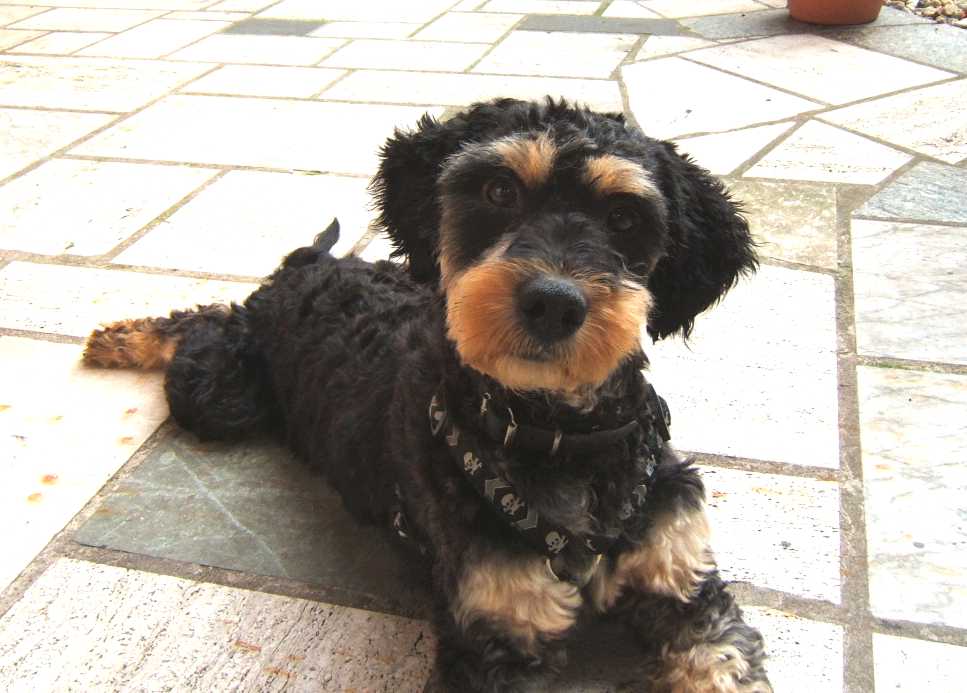 wuschliges langes Fell, auf den Fotos ist er geschoren.