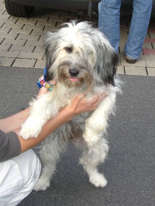 Mischlingshündin mit seidig-langem Fell. Sie ist sehr lieb,