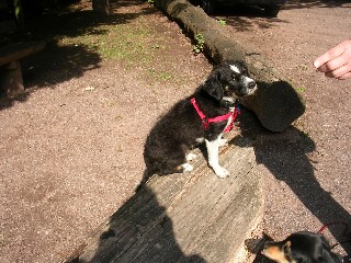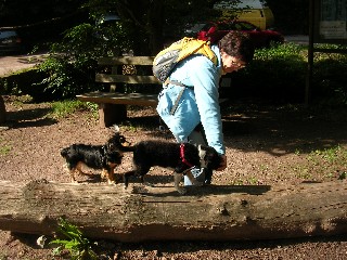 Baumstamm balancieren ohne gleich herunterzufallen. Sie springt