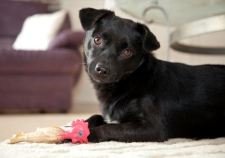 junge Hund spielt er natürlich gerne. Er trägt sein Spielzeug gerne herum