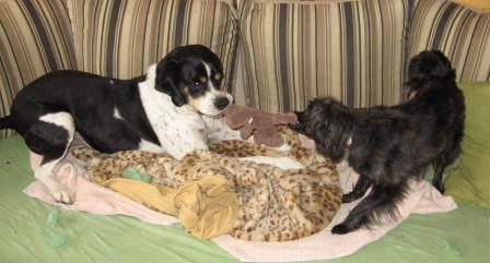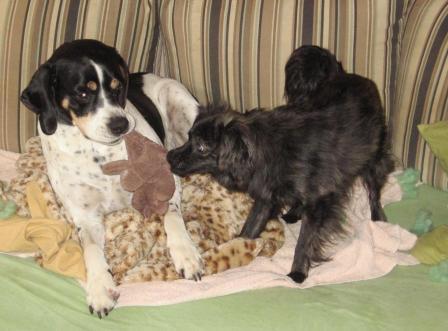 andere Hunde und sucht sowohl kuschelnd als auch spielend
