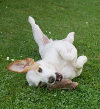 und wälzt sich auf dem Rücken. Chester hat sich von der ersten