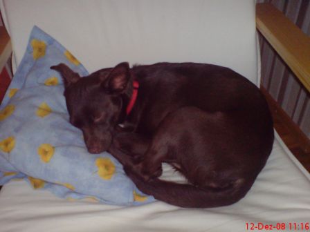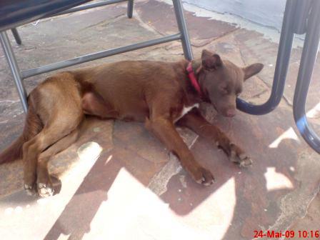 Kurz zu Morena, sie ist die schokoladenbraune Hündin auf den Fotos