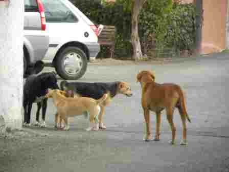 Für die Straßenhunde auf Santorini sind die Überlebenschancen auch hier in Kamari erdenklich schlecht. Nicht nur dass sie Hunger und Durst leiden, überall weggescheucht werden und kaum ein geschütztes Plätzchen zum Schlafen finden, wo sie geduldet werden... so sind sie gerade hier in Kamari den Giftködern ausgeliefert und von den Jägern bedroht. Ein Spießrutenlauf zwischen Hunger und Tod. Die meisten dieser Hunde werden ohne Hilfe nicht überleben... Und auch mit Hilfe haben sie es schwer.
