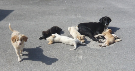 Wir versuchen daher auch hier mit Hilfe von Futterstellen den Straßenhunden zuhelfen,