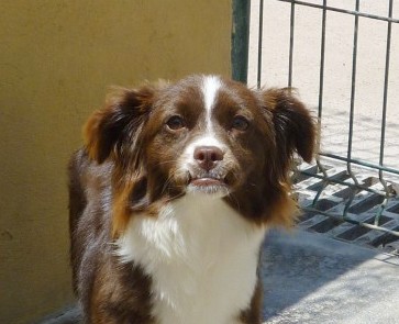 zurückhaltende kleine Hündin. Sie ist sehr lieb zum Menschen und