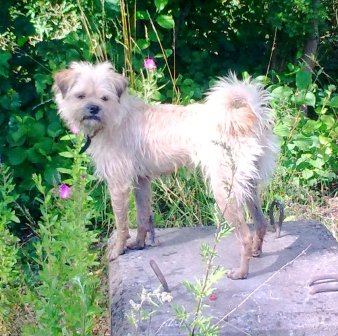 ist ein kecker und lieber kleiner Borderterrier-Mischling, mit viel