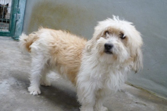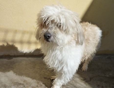 lieber kleiner Hund, der ziemlich verwahrlost von seinen Leuten auf