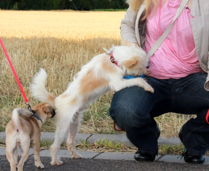 Schritt und Tritt. Anderen Hunden ist er sehr freundlich gegenüber.