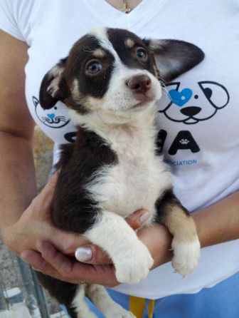 auf Santorini und ist ein fröhlicher, sanfter und sehr lieber Welpe.