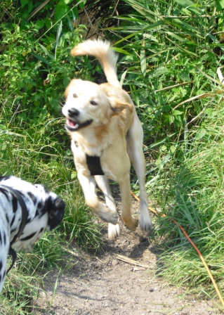 super an die Leine gewöhnt und kann auch schon „Sitz“. Er verhält