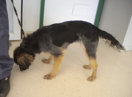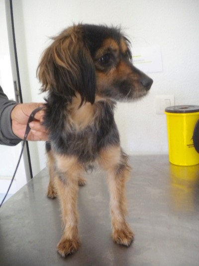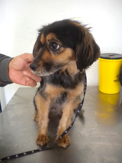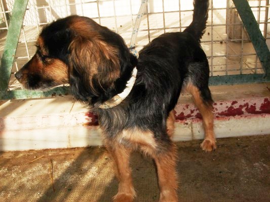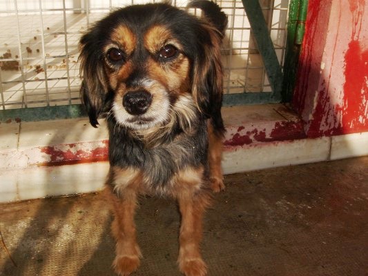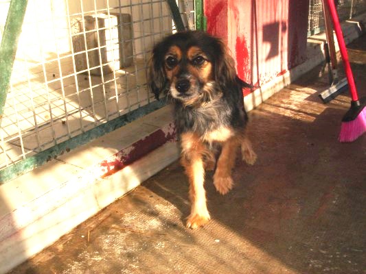 liebevolle kleine Hündin, die in der Tötungsstation von Almeria saß