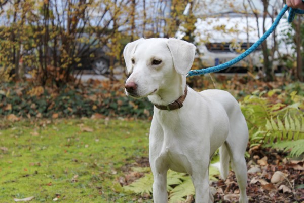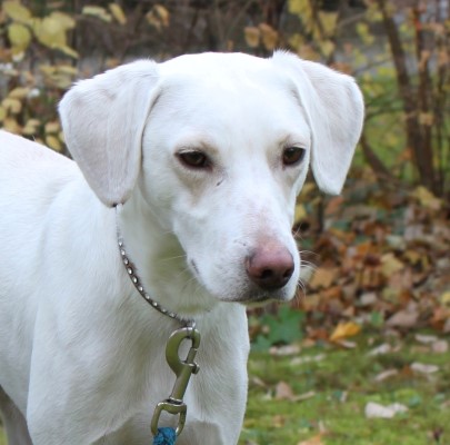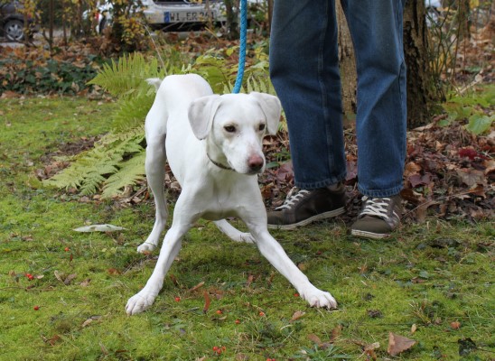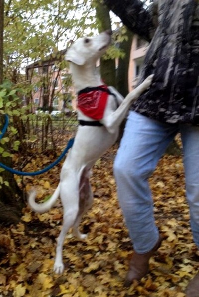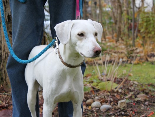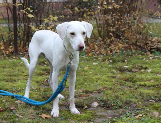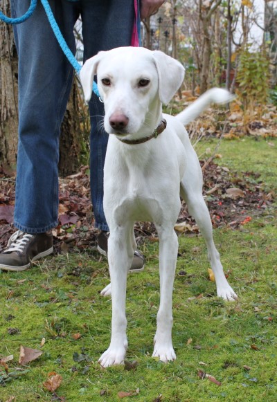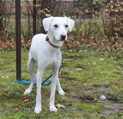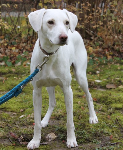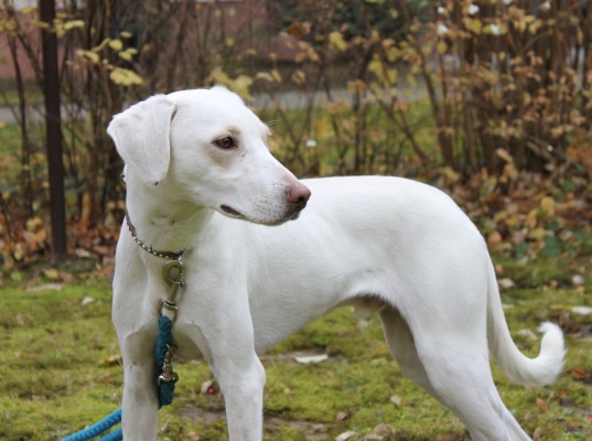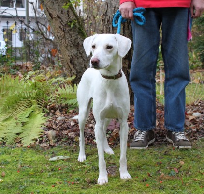 und sehr brav und gelehrig. Ein bildschöner schneeweißer Hund, der