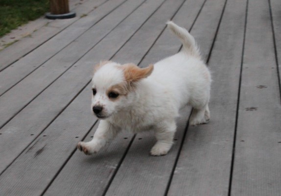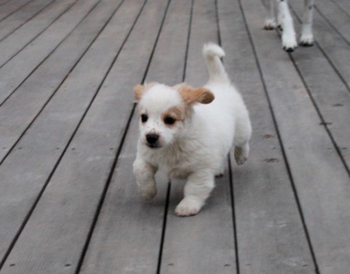 schlauer und selbstbewusster, pfiffiger Welpe der alle Menschen im