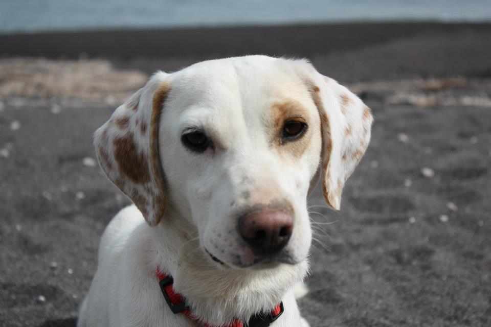 Tierheim auf Santorini. Sie ist eine bildschöne junge Hündin mit