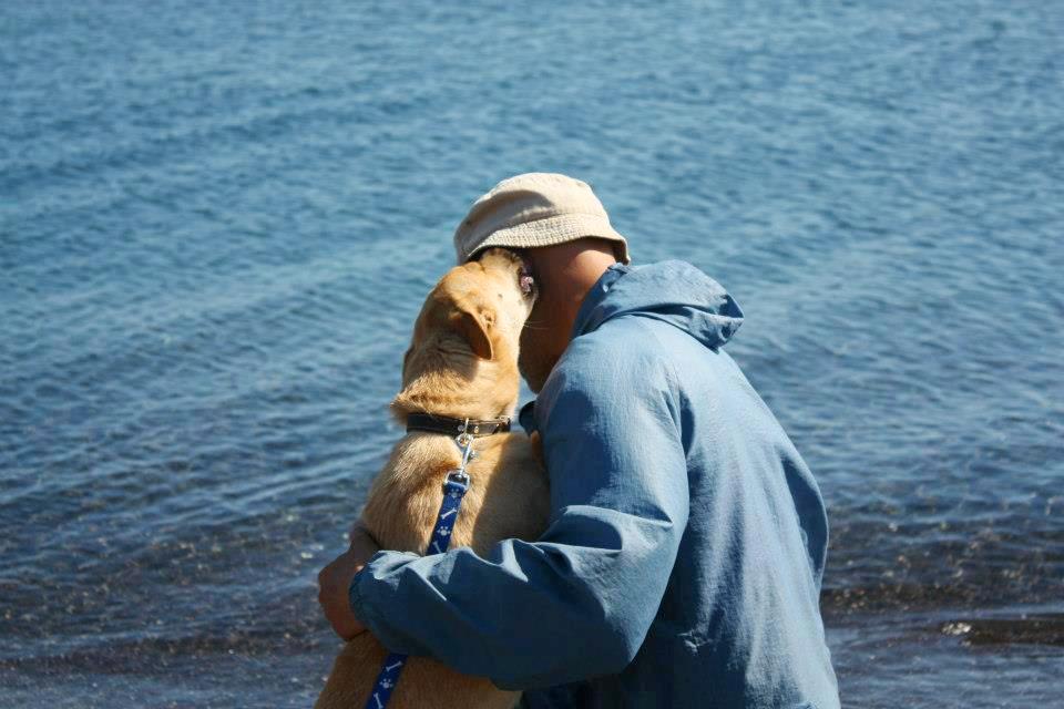 Hündin, die dem Menschen gegenüber stets freundlich und aufmerksam
