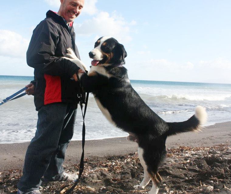 über Paraskevas, dass er ein außergewöhnlich sanfter Hund ist, ein