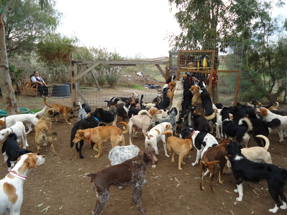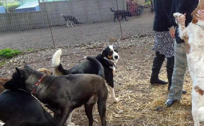 inmitten des großen Hunderudels im Tierheim. Paraskevas liebt den
