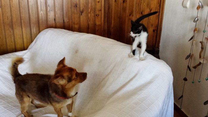 andere Hunde, verträgt sich mit Katzen und hat einen pfiffigen und