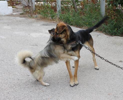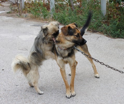 Sam hat eine liebevolle zarte Art mit anderen Hunden zu spielen und