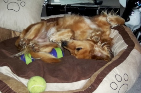 liebt es in bequemen und weichen Hundebettchen zu liegen und zu