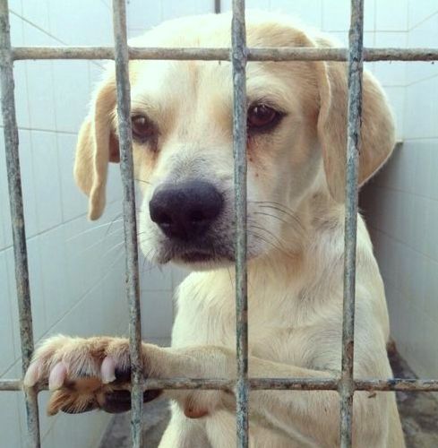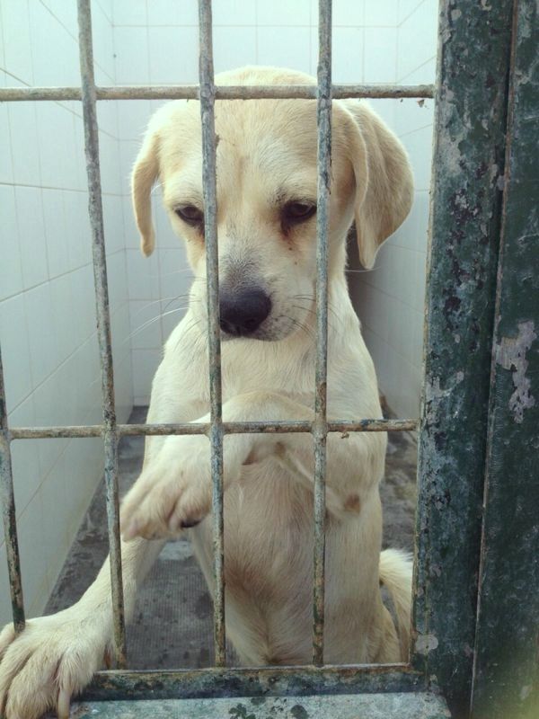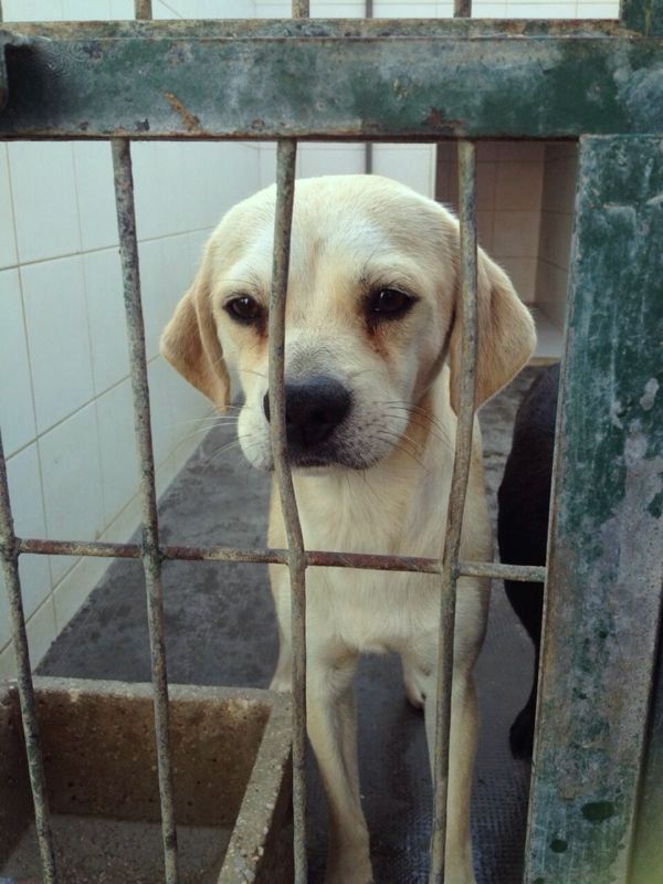 der Tötungsstation von Almeria saß und dessen Zeit abgelaufen war