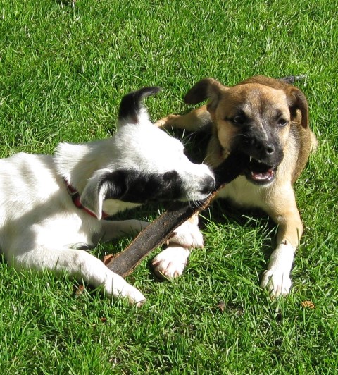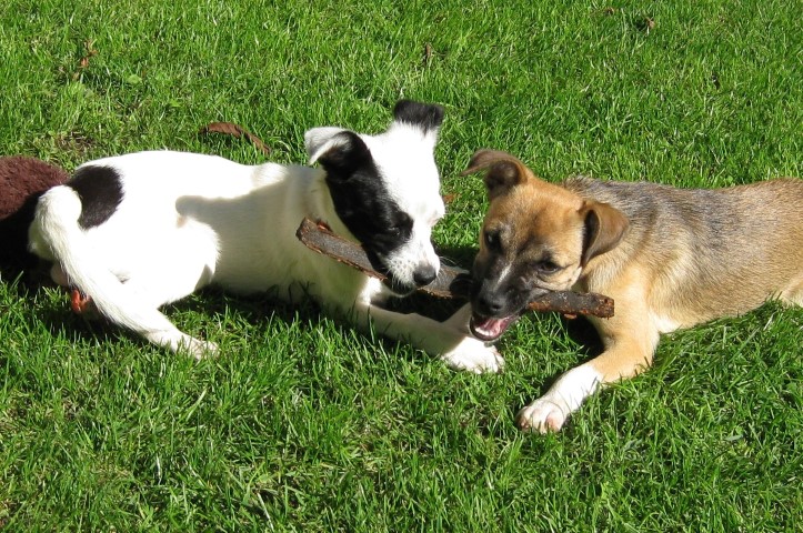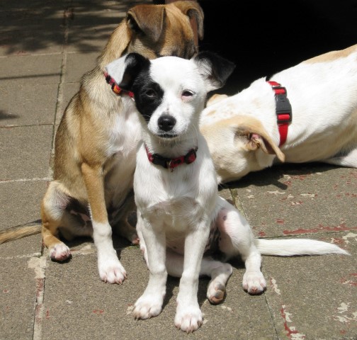 um die drei kleinen Welpen. Inzwischen sind die drei Geschwister in