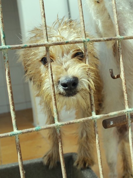 der Tötungsstation von Almeria saß und dessen Zeit abgelaufen war