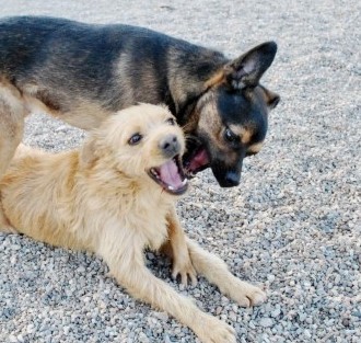 gutmütig zu Menschen ist und sich sehr gut mit anderen Hunden