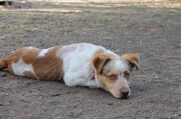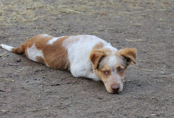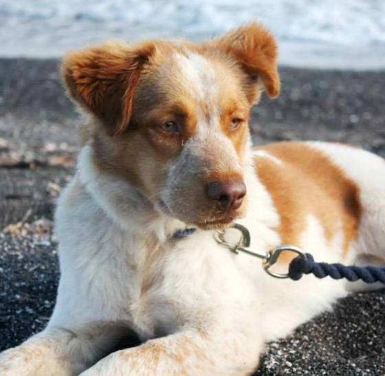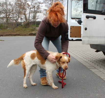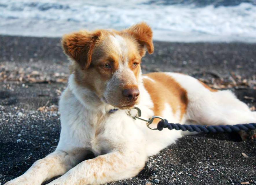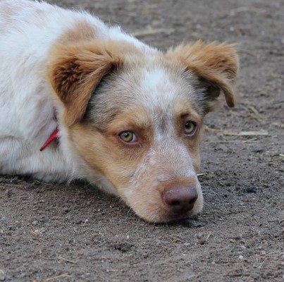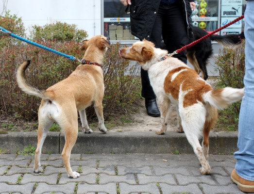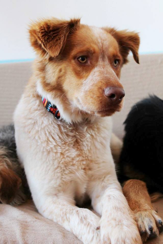 sich ruhend, super verträglich mit allen anderen Hunden und dem
