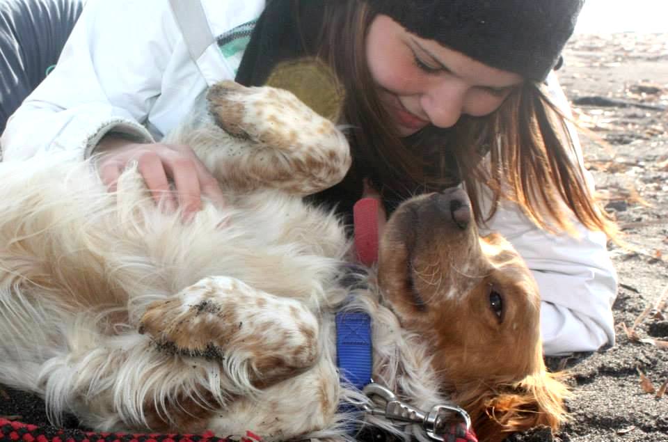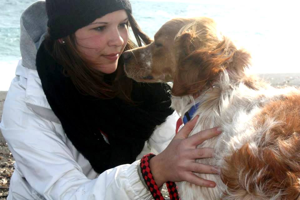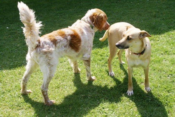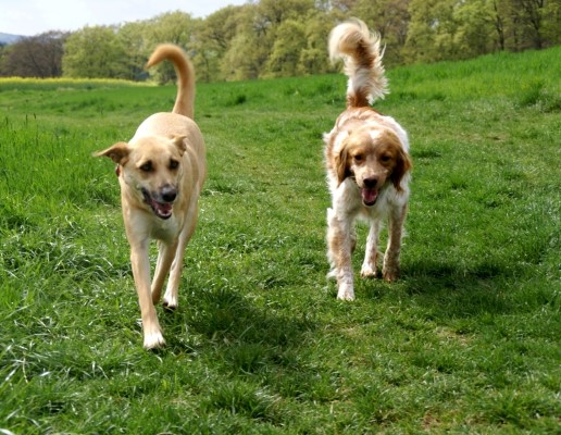 mit andern Hunden ist und sich dem Menschen gegenüber freundlich