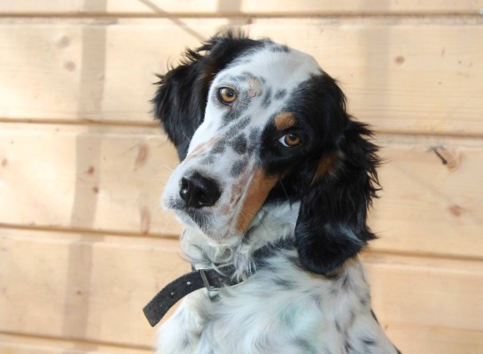 Tierheim auf Santorini. Sie ist eine bildschöne Settermixhündin mit