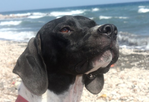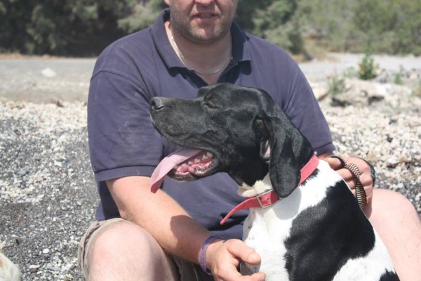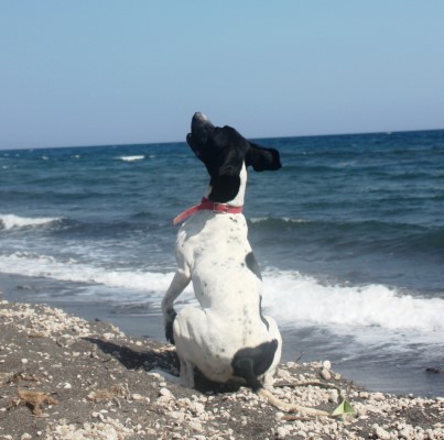 von Santorini gefunden. Er ist ein super toller Hund. Er ist absolut