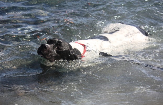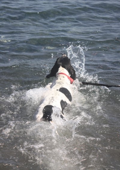 liebt es auch im Wasser zu sein, zu spielen und zu toben und neue