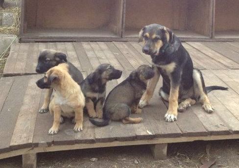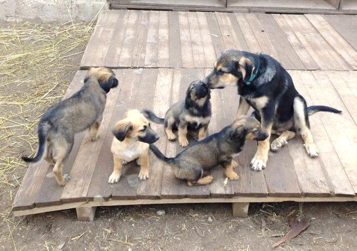 sich ruhend, ausgeglichen. Mit kleineren Welpen geht
