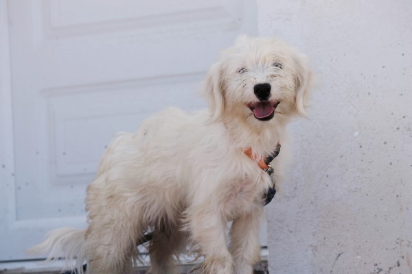 Pflegestelle auf Santorini. Sie ist eine bildschöne wuschlige Welpin