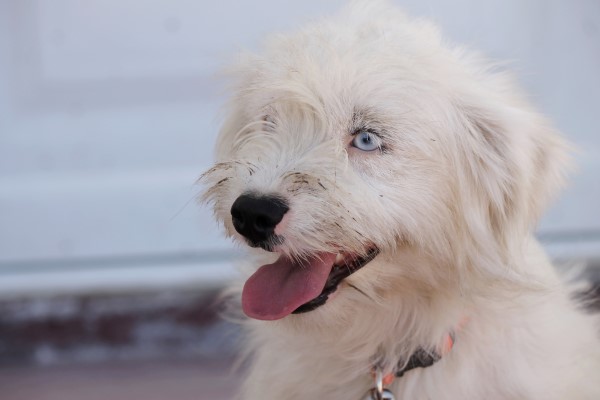 mit blauen Augen und einem sehr liebevollem Charakter.