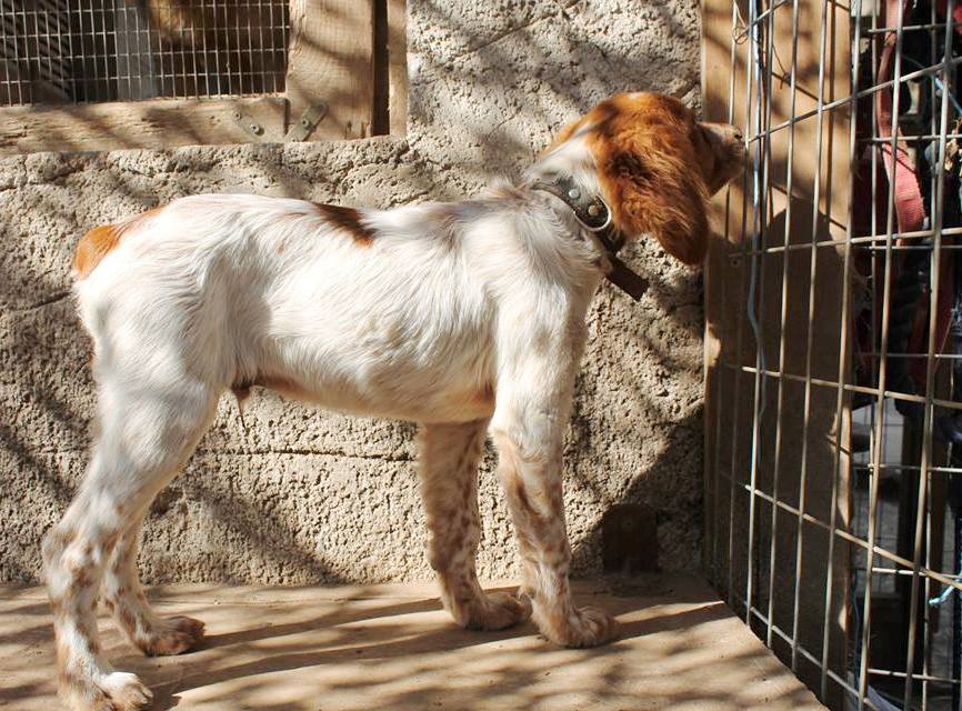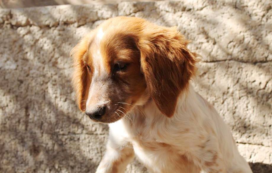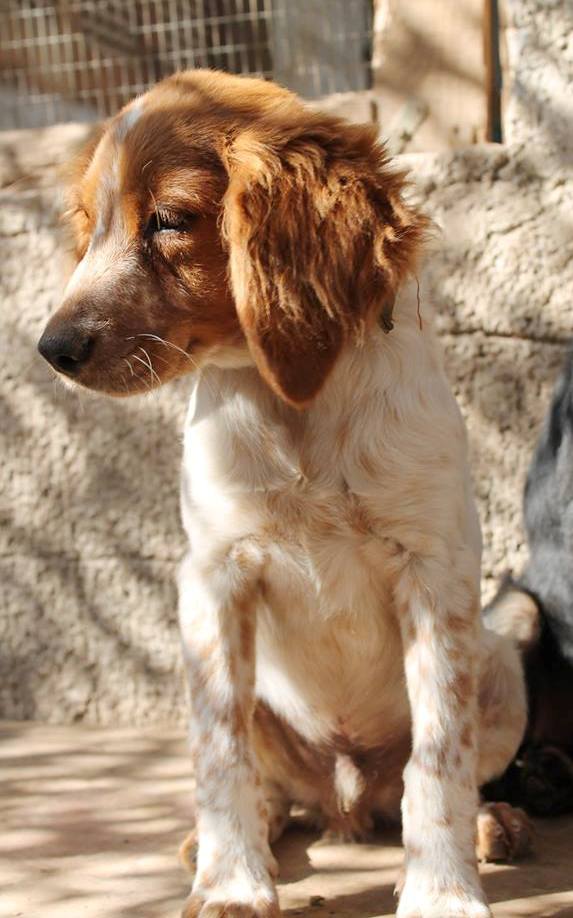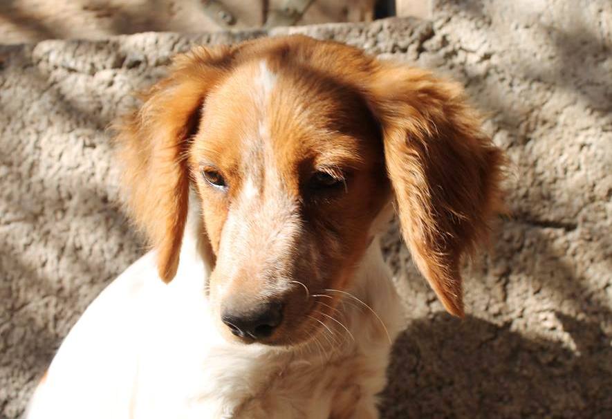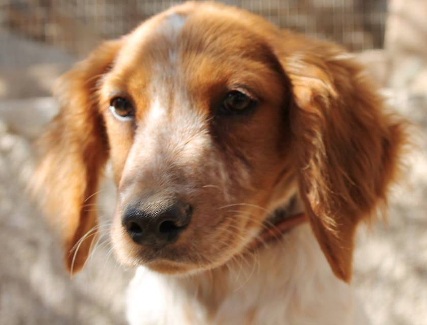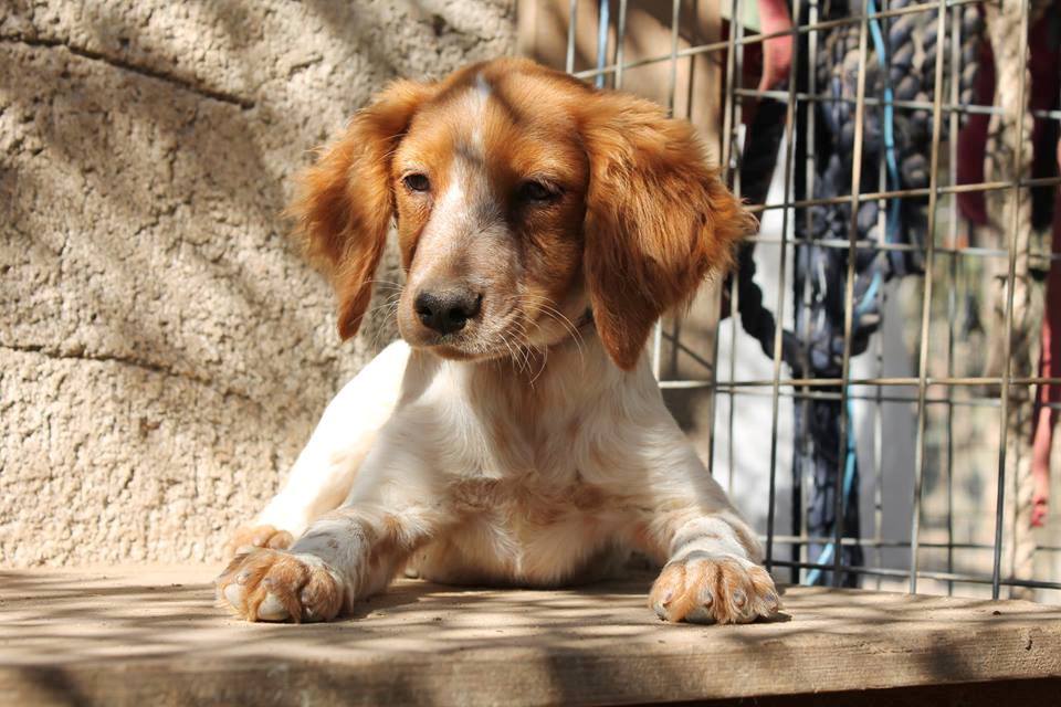 Tierheim auf Santorini. Er ist ein sehr lieber kleiner Welpe, der