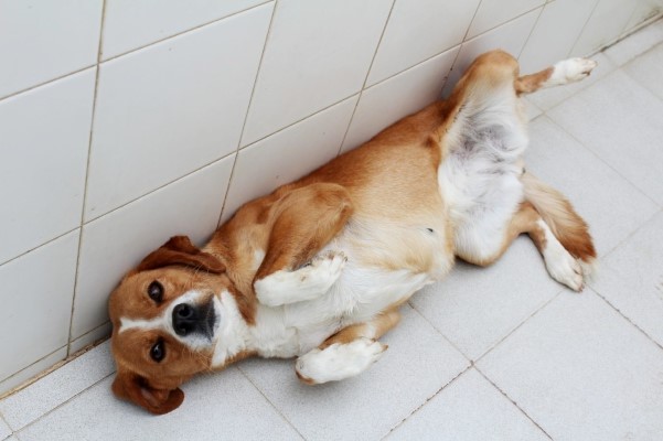 zärtliche junge Hündin, die in