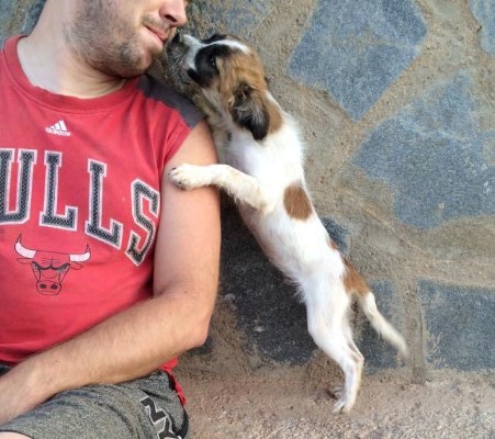 herzig und gutmütig. Er verträgt sich mit allen Hunden und auch