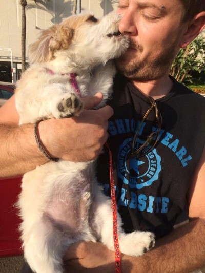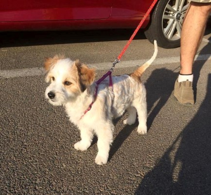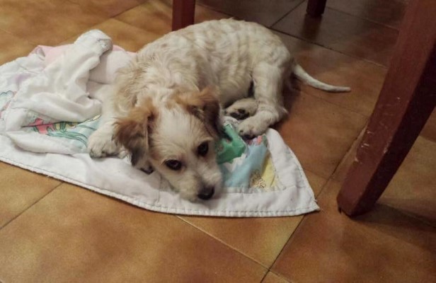 kleine süße Welpe wurde von einer Familie auf der Straße gefunden