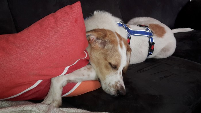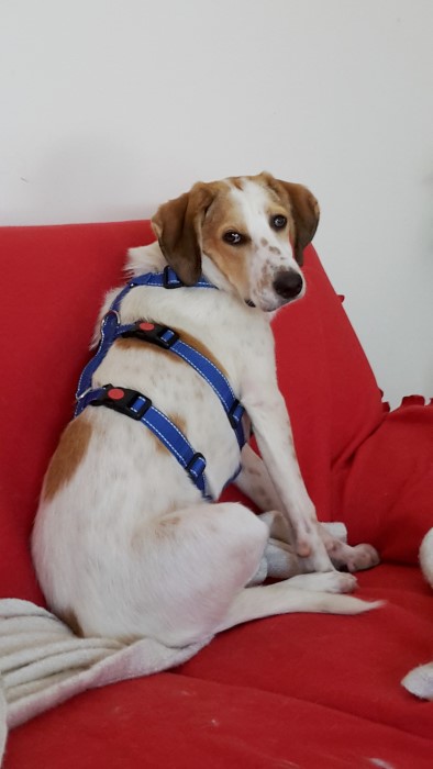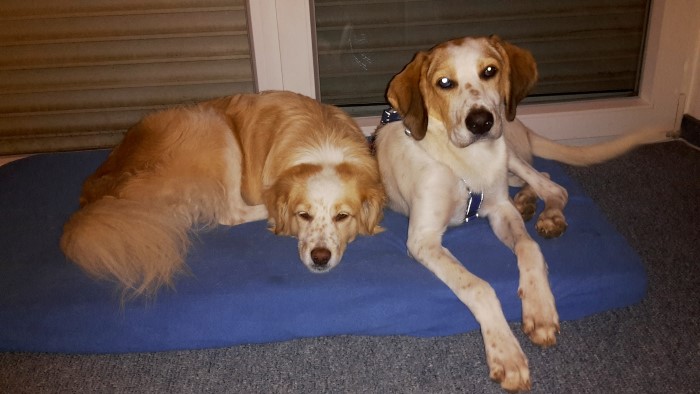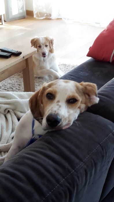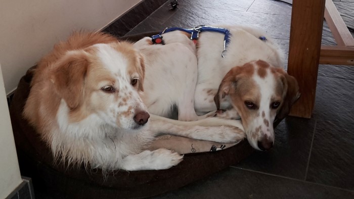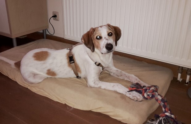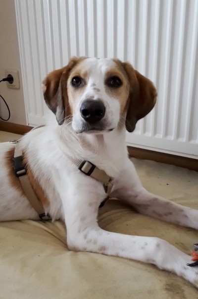 stubenrein und das Alleinebleiben mit unseren Hund gewöhnt.