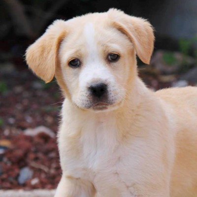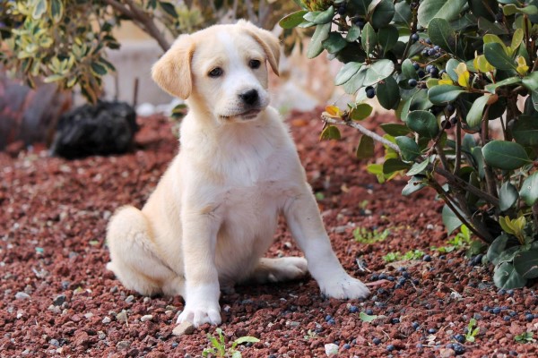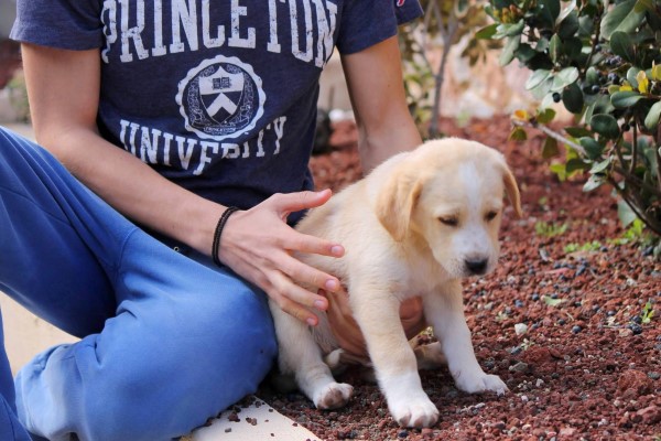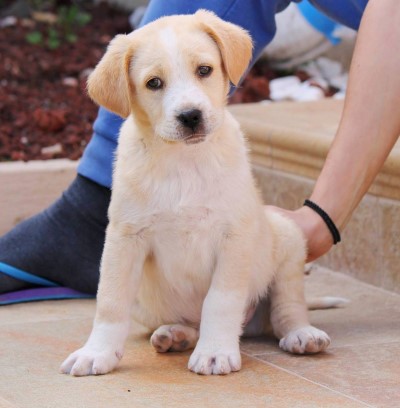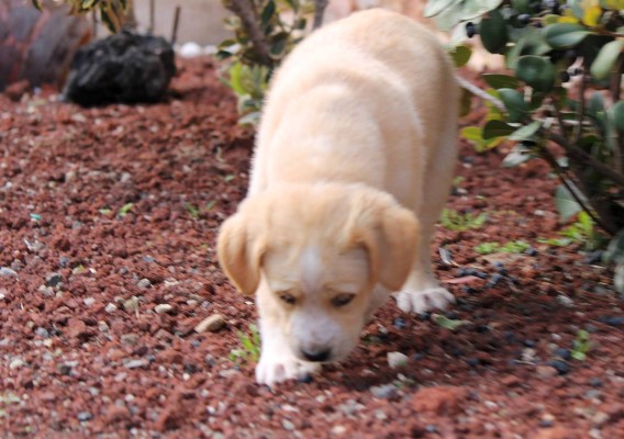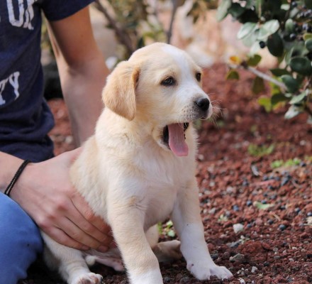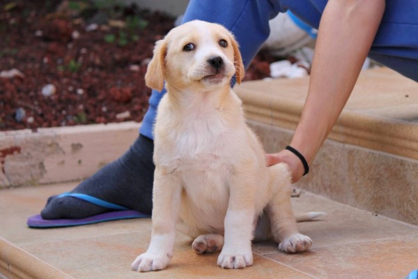 Pflegestelle auf Santorini. Er ist ein bezaubernder kleiner Welpe